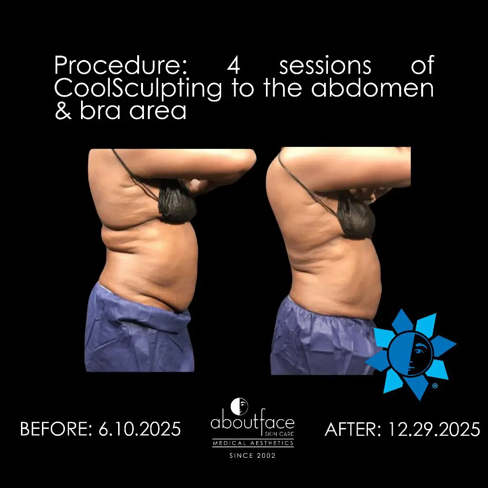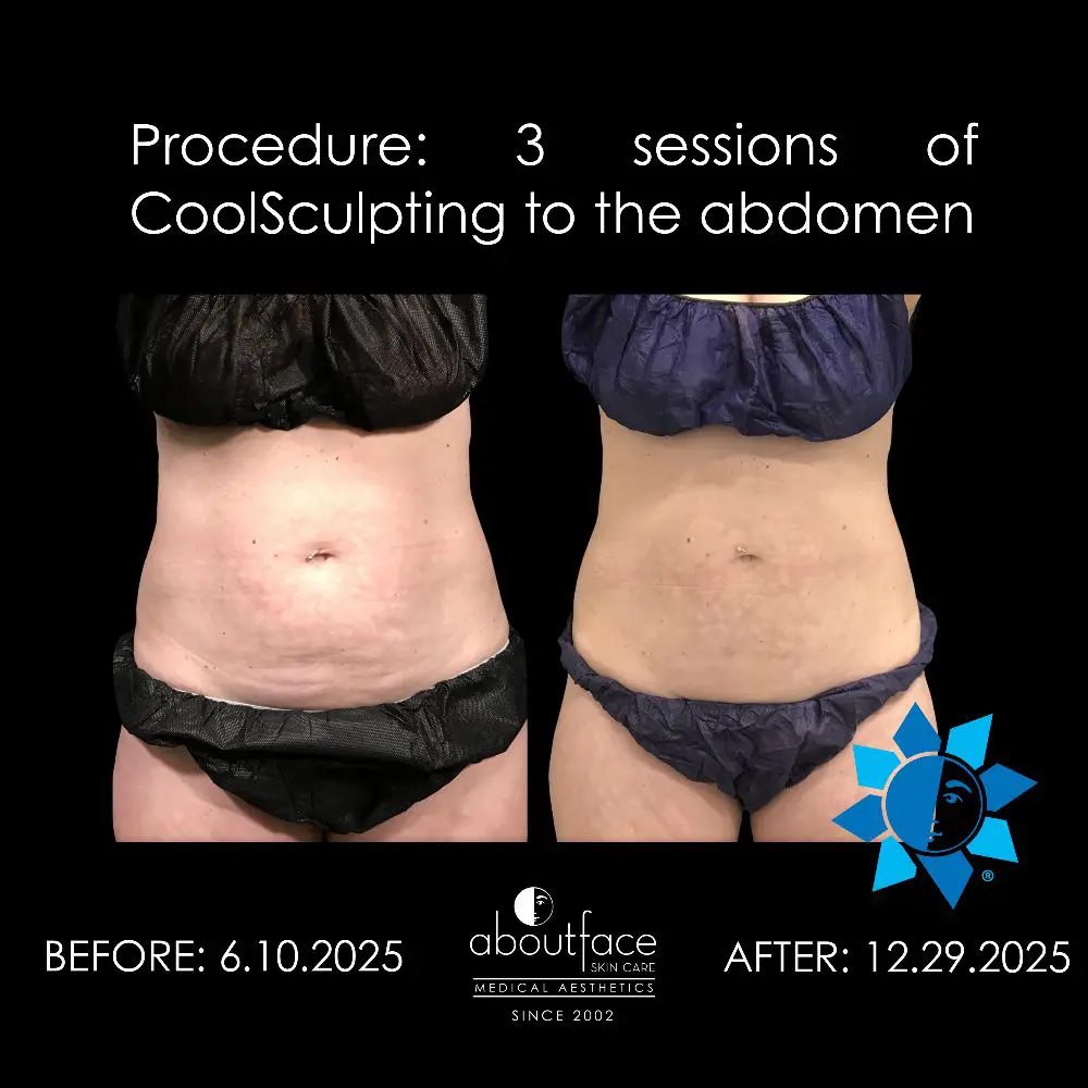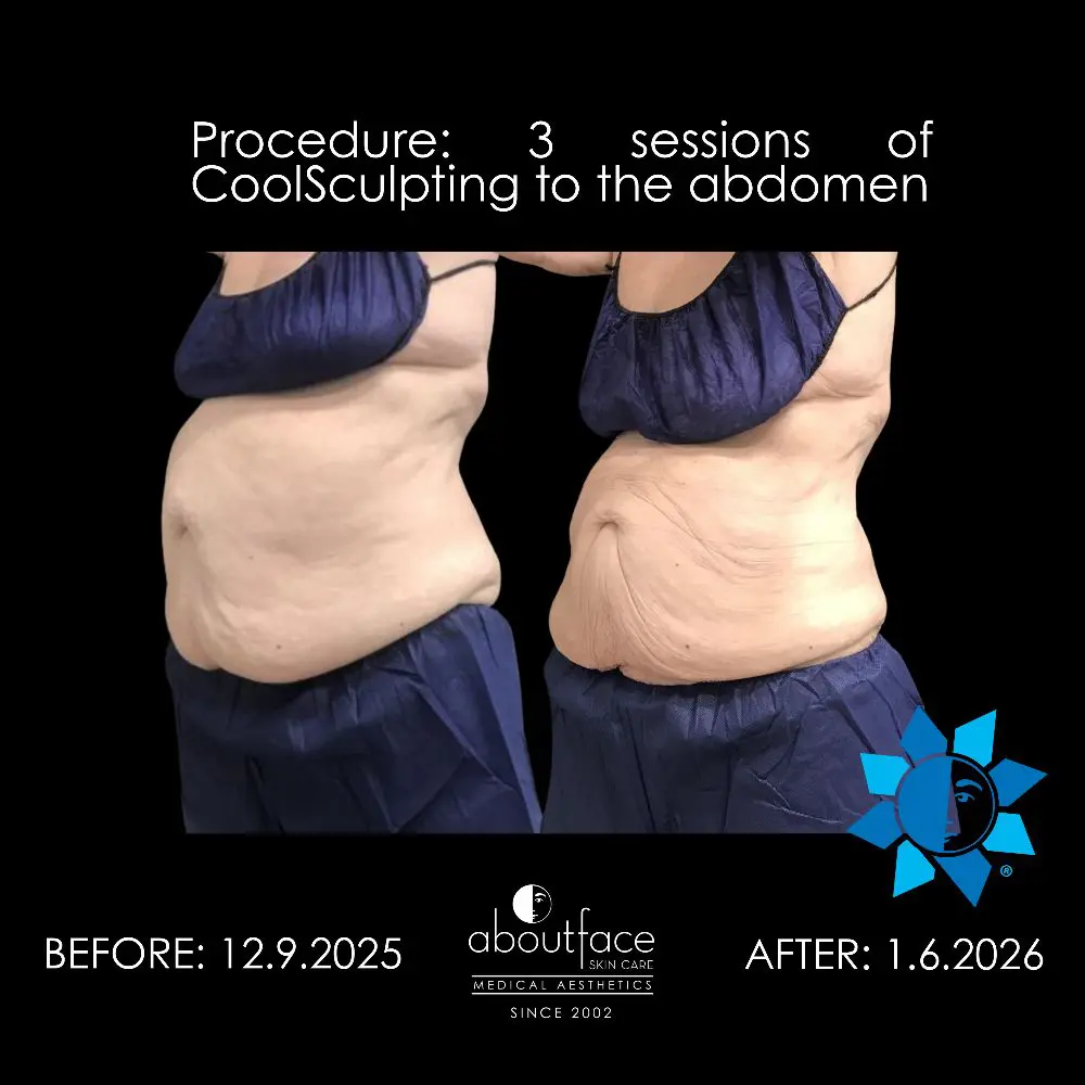 Not ready for a full transformation plan just yet or just have a small stubborn fat pocket? No problem! At About Face Skin Care, we offer A La Carté CoolSculpting® pricing, allowing you to target the areas you care about most — with flexibility, transparency, and rewards along the way.